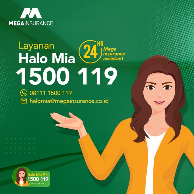 Direktur Operasional & IT Mega Insurance Hardianto Wirawan, mengatakan “Pelanggan dapat menghubungi layanan call center 24 jam melalui Hotline call Halo MIA 1500 119 , Chat WhatsApp 08111 1500 119 dan email halomia@megainsurance.co.id. Halo MIA dapat melayani permintaan informasi produk, proses klaim, dan keluhan lainnya”.
